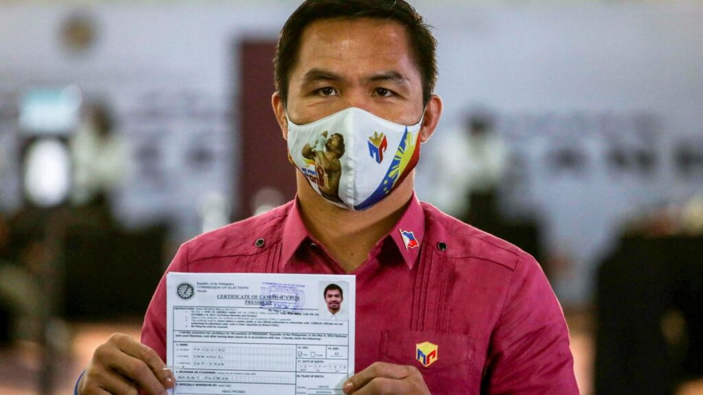 Pacquiao, quien entró en la política en 2010 como congresista antes de ser elegido senador, dijo la semana pasada que se postularía para las elecciones presidenciales de 2022 en el país insular del sureste asiático.