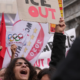 Ciudadanos, políticos y sindicatos se manifestaron el sábado en Milán contra la presencia de agentes antiinmigración durante los JJ.OO. de Invierno. Mostraron pancartas con las palabras...