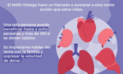 En el marco del Día Mundial de la Donación de Órganos, Tejidos y Trasplantes, 14 de octubre, el Instituto Mexicano del Seguro Social (IMSS) en Hidalgo...