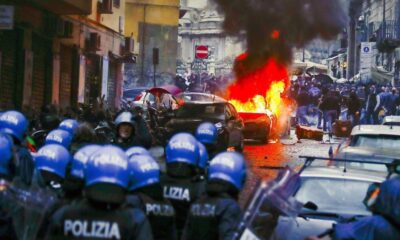 Escenas de guerrilla urbana en Nápoles. El centro de la ciudad vivió una auténtica batalla campal entre hinchas del Eintracht de Fráncfort y la policía italiana,...