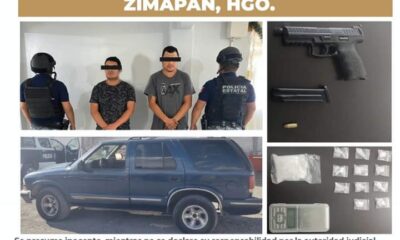 Elementos de la Secretaría de Seguridad Pública de Hidalgo detuvieron a dos sujetos, que tenían en su posesión once bolsitas transparentes, que contenían polvo cristalino, probable...