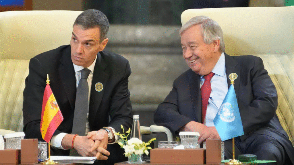 El primer ministro español, Pedro Sánchez, se dirigió a la cumbre y dijo: «Gaza está sangrando ante nuestros ojos y no podemos permanecer en silencio». Reveló que Madrid está trabajando para presentar un nuevo proyecto de resolución a la Asamblea General exigiendo a Israel el fin del bloqueo.