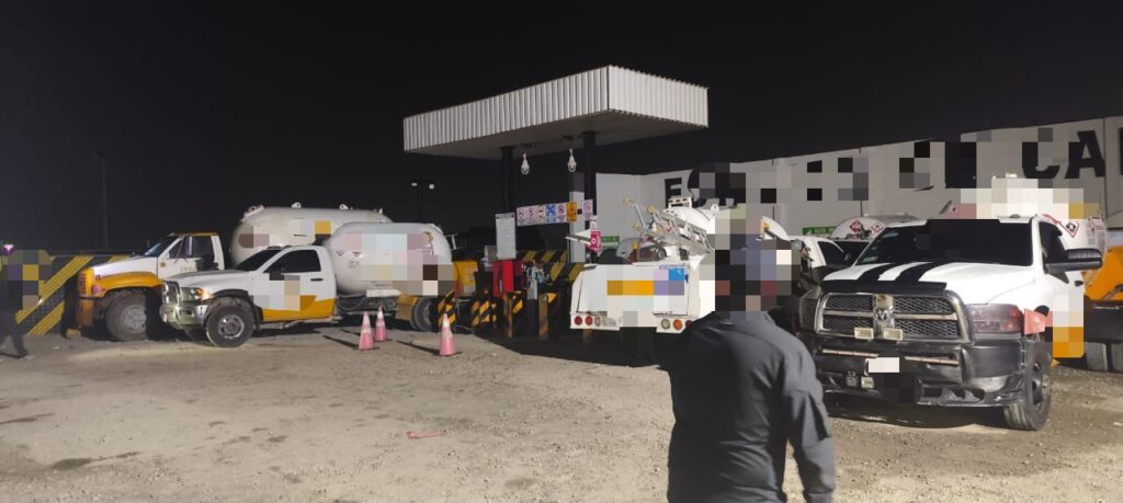 El Gabinete de Seguridad del Gobierno de México en coordinación con elementos de la PFM y del Centro Federal Pericial Forense, ambos de la Agencia de Investigación Criminal (AIC) ejecutaron la orden de cateo en el inmueble ubicado en el municipio de Tizayuca, donde se aseguró gas L.P., nueve vehículos tipo pipa, un vehículo tipo estacas y 45 tanques tipo cilindro de diversas capacidades.