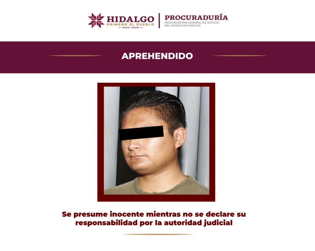 Con base en las primeras indagatorias, el personal ministerial se allegó de datos de prueba suficientes con los que se solicitó a la autoridad judicial la orden de aprehensión correspondiente, misma que fue ejecutada la tarde de este 06 de agosto de 2024, en Pachuca de Soto por elementos de la División de Investigación de la Agencia de Investigación Criminal.