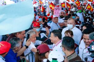 El candidato común de «Juntos Hacemos Historia» también estuvo acompañado por la presidenta del Comité Ejecutivo Estatal de Morena, Sandra Ordóñez Pérez; María Merced González y César Cravioto Romero, senadores por Morena; y el presidente del Comité Ejecutivo Estatal del PNAH, Sergio Hernández.