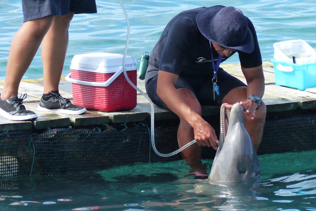 Tras el recorrido se observó la presencia de siete delfines nariz de botella, de la especie Tursiops truncatus en buen estado físico, y se constató que el delfinario cuenta con registro como Predio o Instalación que Maneja Vida Silvestre de forma confinada (PIMVS).