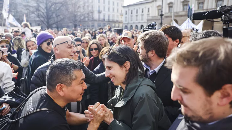 Entre los manifestantes se encontraba Elly Schlein, la líder del Partido Democrático de la oposición italiana, que calificó de ideológica, «cruel» y discriminatoria la represión burocrática del Gobierno contra las familias LGTBIQ, y prometió impulsar en el Parlamento una legislación que reconozca y proteja mejor sus derechos.