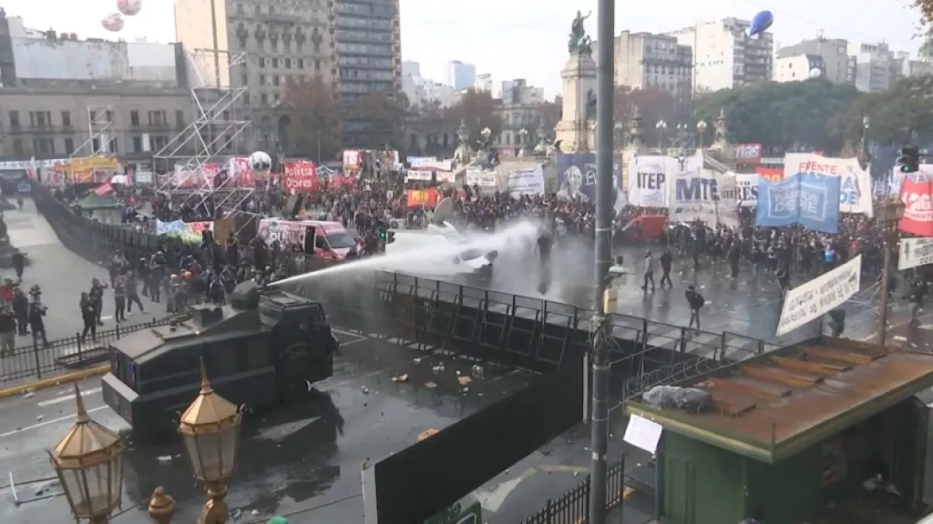 Cañón de agua usado contra manifestantes en Buenos AiresNatacha Pisarenko/Copyright 2024 The AP. All rights reserved