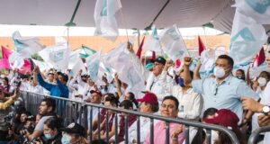 Al inicio de su intervención, el candidato de “Juntos Hacemos Historia” valoró la emoción de Tlanchinol y el que todos los mítines que realiza se conviertan en una fiesta cívica mientras que, en el otro lado, parece que en sus mítines van a un funeral. Y sí, reafirmó, van al entierro del viejo régimen.