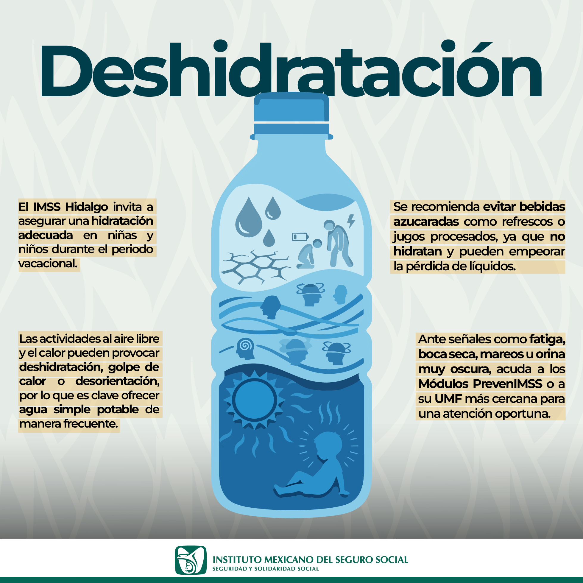 El Instituto Mexicano del Seguro Social (IMSS) en Hidalgo hace un llamado a madres, padres de familia o tutores para mantener una correcta hidratación en niños para evitar riesgos a la salud durante este periodo vacacional.