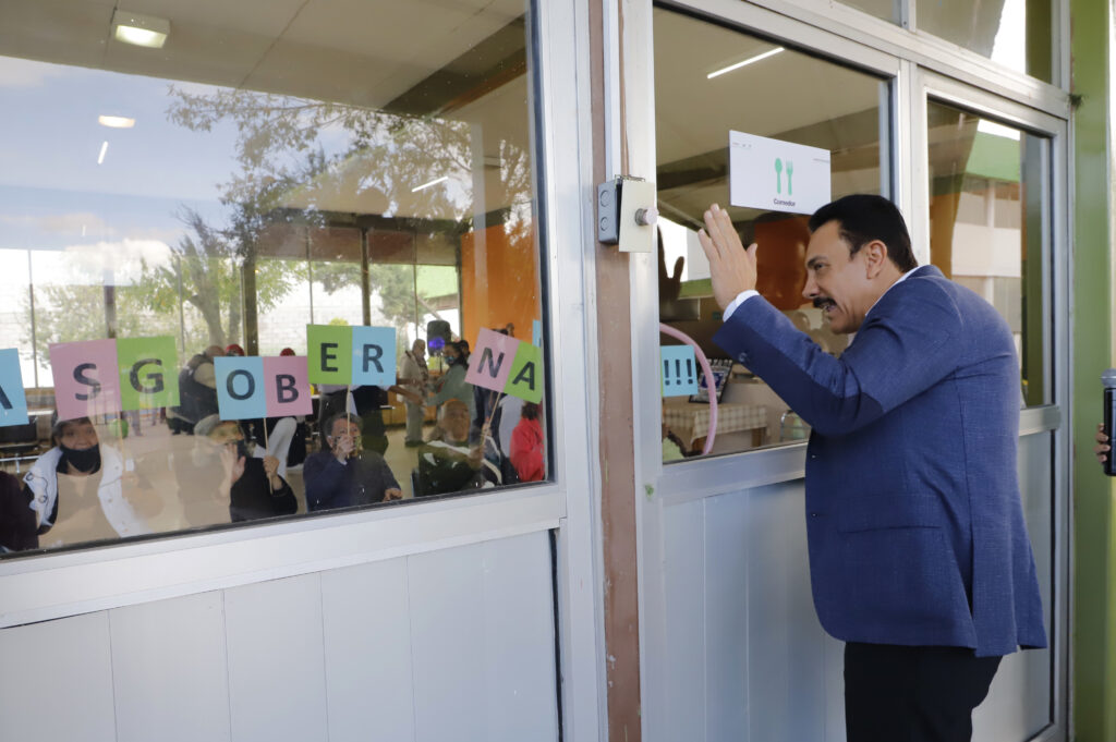 Al concluir el acto protocolario el mandatario estatal saludó, a través de las ventanas del comedor, a las 33 mujeres y 28 hombres que viven en el centro gerontológico; como medida sanitaria los residentes se mantuvieron en dicho espacio antes y durante el evento, así como después de la desinfección de las áreas en la que estuvieron autoridades e invitados especiales.
