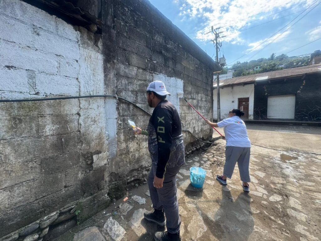 Durante la actividad se aplicó, en una extensión de aproximadamente 600 metros cuadrados, una pintura natural en polvo a base de cal, sustentable, resistente a la intemperie, que previene hongos y no genera emisiones tóxicas; además, cuenta con una vida útil de hasta 30 años.