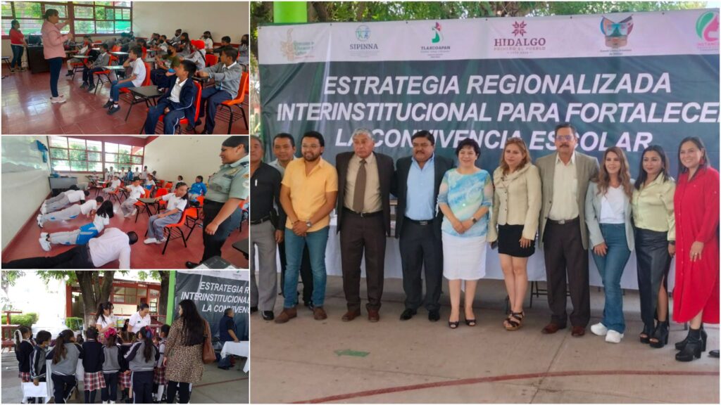 La Secretaría de Educación Pública de Hidalgo (SEPH) lleva a cabo la Estrategia Interinstitucional Regionalizada para Fortalecer la Convivencia Escolar en los municipios de Ixmiquilpan, Tulancingo y Tlaxcoapan, con la finalidad de contribuir a la seguridad y bienestar de las y los estudiantes de los diferentes niveles educativos en el estado, mediante la implementación de acciones transversales y articuladas.