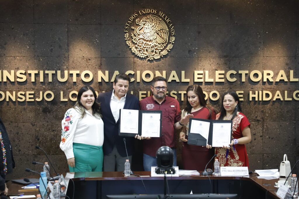 En las instalaciones del INE Hidalgo, Simey Olvera y Cuauhtémoc Ochoa recibieron sus constancias que los acreditan como senadores electos. Olvera, junto a su suplente Bertha Miranda, obtuvo la constancia de mayoría en la primera fórmula por Hidalgo en el Senado.