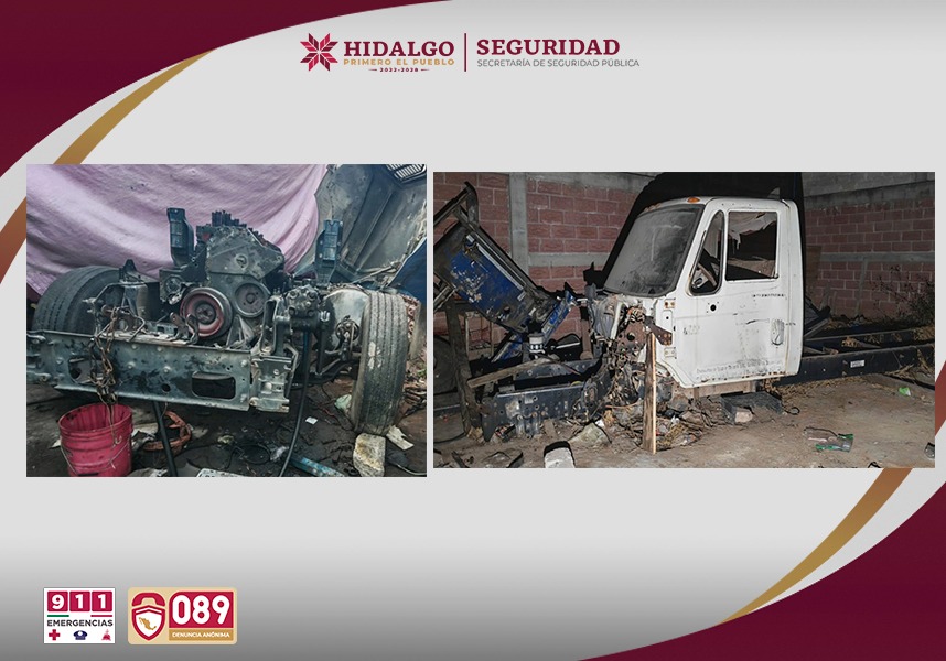 Durante la intervención, se localizó un chasis de tractocamión con reporte de robo en la Ciudad de México, así como una cabina color blanco, ambos presuntamente ligados a esta actividad ilícita, lo que permite fortalecer las líneas de investigación sobre el robo de unidades pesadas y su despiece en este tipo de centros clandestinos.