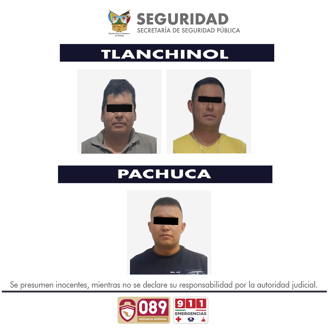 Derivado de acciones de vigilancia, personal de la Secretaría de Seguridad Pública de Hidalgo (SSPH), aseguró a tres personas por la posesión ilegal de armas de fuego.