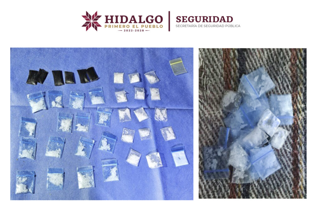 En seguimiento a labores de inteligencia, la SSPH, en coordinación con la Procuraduría General de Justicia del Estado de Hidalgo (PGJEH), cumplimentaron órdenes de cateo en tres centros nocturnos de Tizayuca, donde fueron halladas 312 dosis de droga sintética “cristal”.