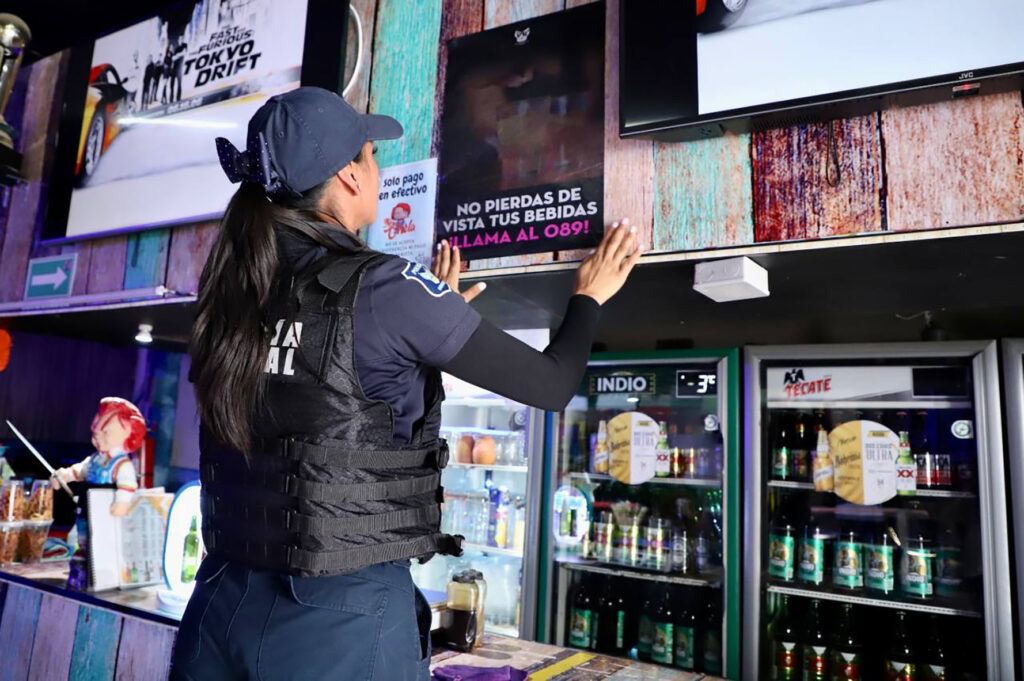Con la participación de personal operativo, se llevó a cabo la pega de carteles en comercios, restaurantes y bares, con los cuales se busca incentivar a la población para reportar cualquier actividad relacionada con el delito de narcomenudeo.