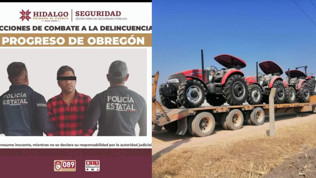 Elementos de la Secretaría de Seguridad Pública de Hidalgo llevaron a cabo el aseguramiento de un tractocamión y cuatro tractores agrícolas, mismos que contaban con reporte de robo.