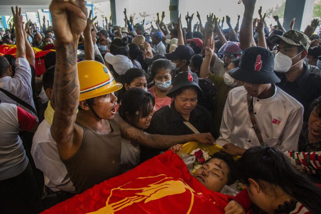En los últimos días, con motivo de los funerales de los muertos, un gentío acompañó a los féretros. Muchos hacían el saludo de los tres dedos, una señal de resistencia al golpe en el país asiático.