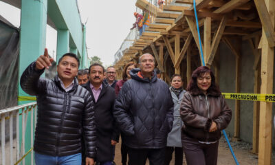 El secretario de Educación Pública de Hidalgo, Natividad Castrejón Valdez, supervisó los avances en la construcción de un nuevo módulo educativo en la Secundaria General “Profr....