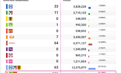 Redacción, 11 de Junio.- El Instituto Nacional Electoral (INE) concluyó los cómputos distritales de la elección del pasado 6 de junio para renovar la Cámara de...