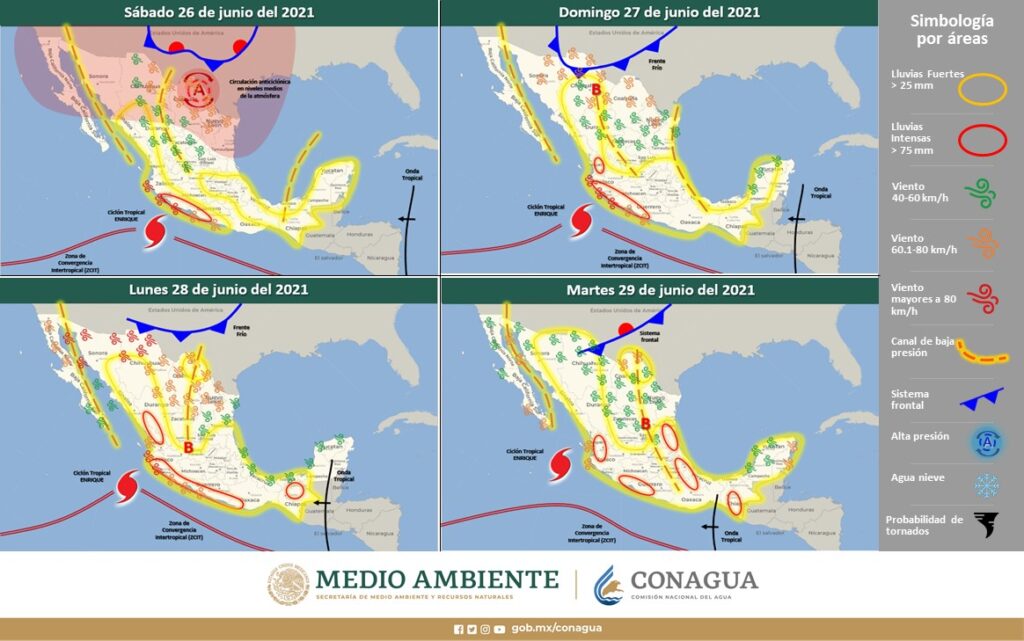 La tormenta tropical Enrique avanza por el Pacífico mexicano dejando lluvias y será huracán el sábado, informó el Servicio Meteorológico Nacional (SMN).