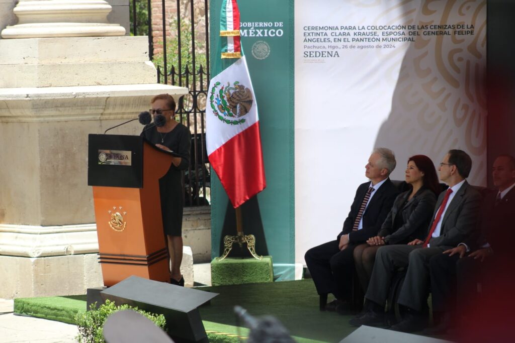 Este lunes, en un evento cívico, el gobernador de Hidalgo, Julio Menchaca aseguró que, con el arribo de los restos de Ángeles Krause, para ser colocados junto a los de su esposo, es un acto de justicia con un héroe nacional, Felipe Ángeles, quien trascendió en la historia a través de los valores que hoy inspiran a México.