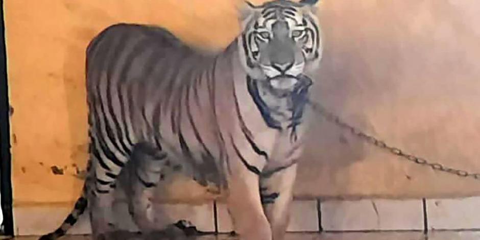 Al ejecutar la orden, los policías fueron ahuyentados por el enorme felino, que estaba atado con cadenas en una de las habitaciones. Se trata de una hembra sana de aproximadamente dos años, de acuerdo con los especialistas que participaron en la captura.