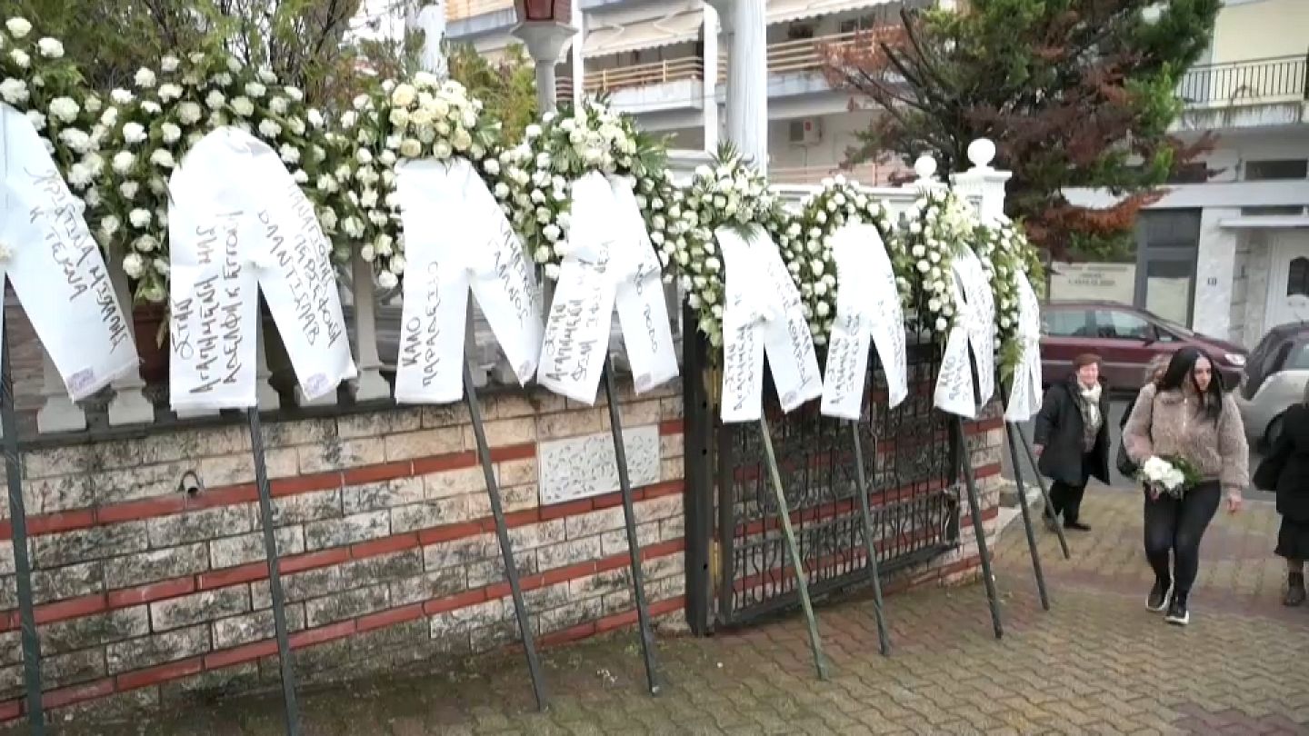 Docenas de personas se reunieron en la localidad de Giannitsa para asistir al funeral de Ifigenia Mitska, de 23 años, pasajera de uno de los trenes implicados en el accidente mortal cerca de la ciudad de Larisa.