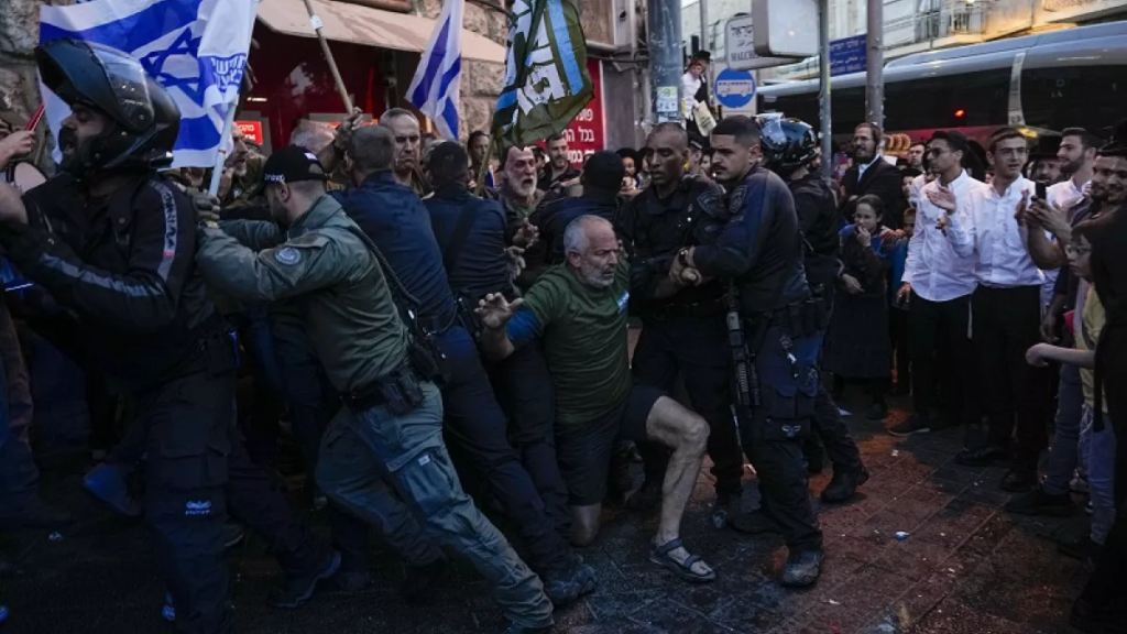 La otra cuestión planteada por algunos manifestantes es el hecho de que los judíos ultraortodoxos, llamados jaredíes, están exentos del servicio militar obligatorio. Algunos grupos creen que en medio de una guerra esto no es justo, ya que los jaredíes representan hasta el 13% de los ciudadanos israelíes y tienen un poder político significativo.